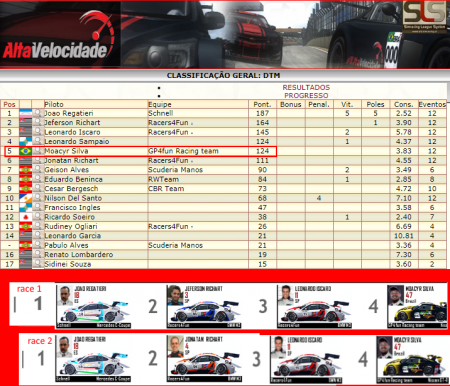 e o 4º lugar no geral empatado em 124 pontos com leonardo Sampaio